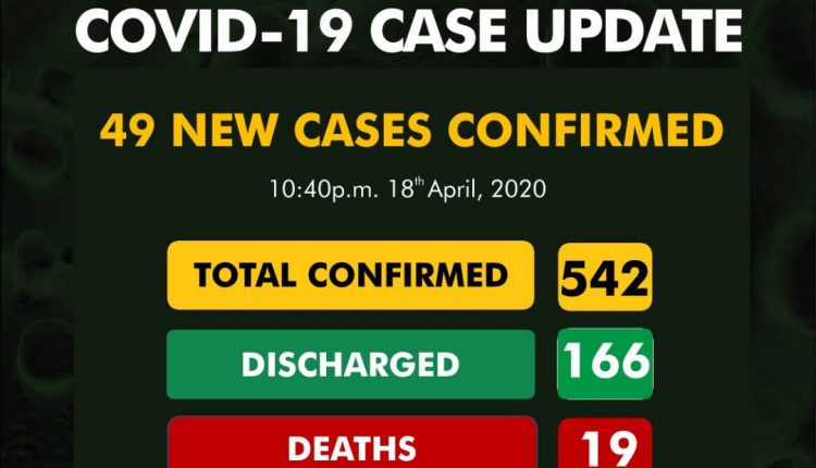 As at 10:40 pm 18th April there are 542 confirmed cases of #COVID19 reported in Nigeria.