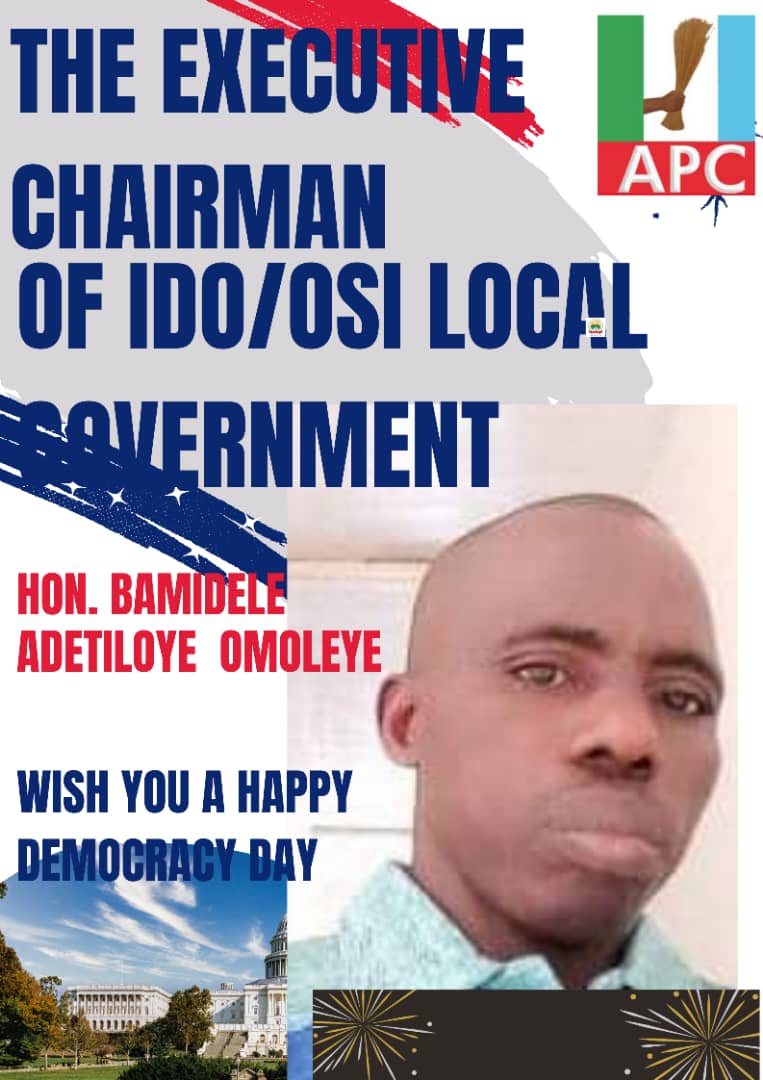 The chairman congratulated the people of Ido/Osi local government, Ekiti and Nigeria on this year’s Democracy Day.