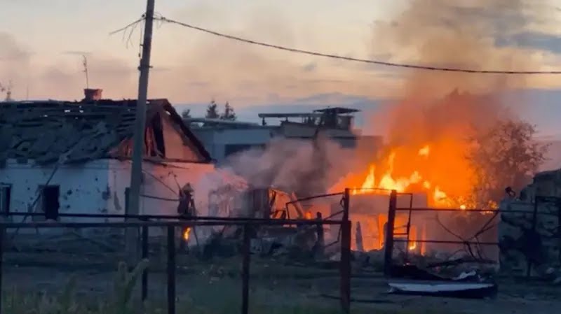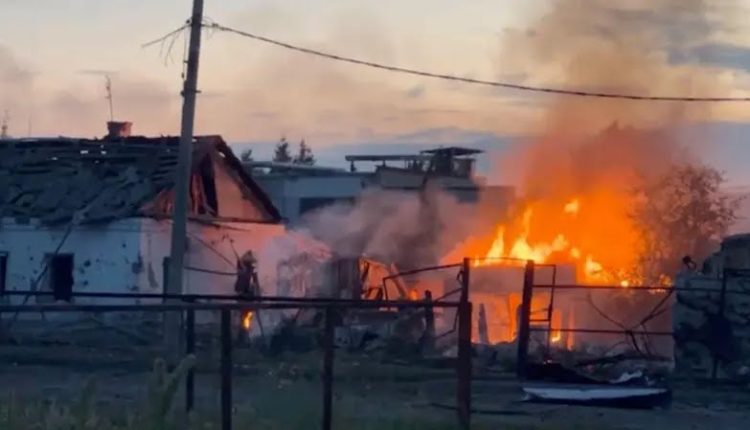 A huge explosion is seen on video in the village reportedly occupied by Ukrainian forces.