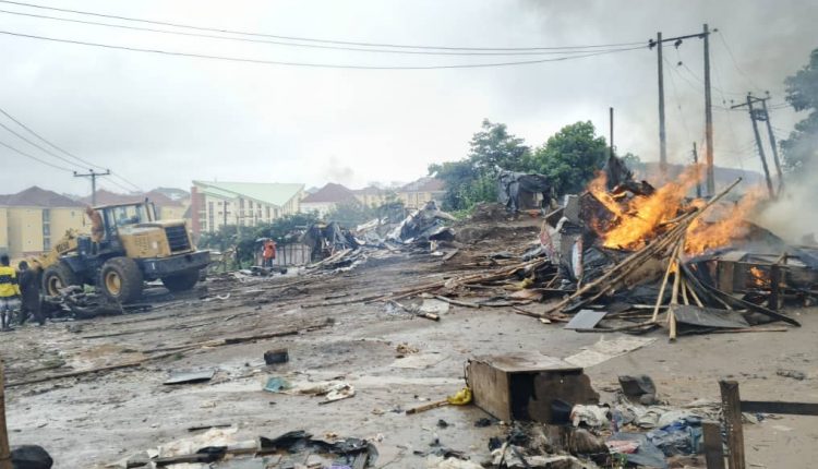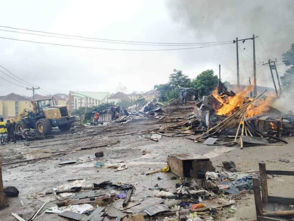 The City Sanitation Operation of the Federal Capital Territory (FCT) has demolished illegal structures and shanties, popularly called, “Cashew Garden” in Apo Cadastral Zone E27, Abuja.